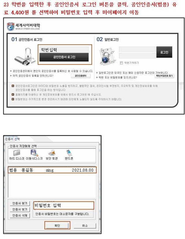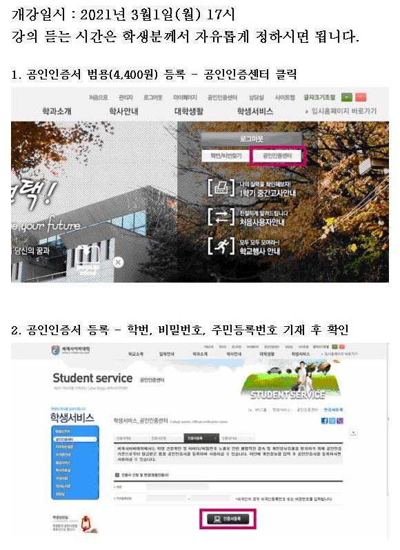 반드시 본교 홈페이지 접속은 PC 컴퓨터로만 수강 가능합니다.